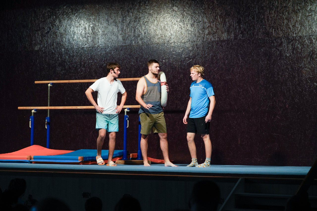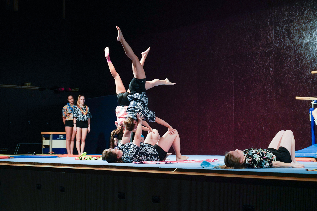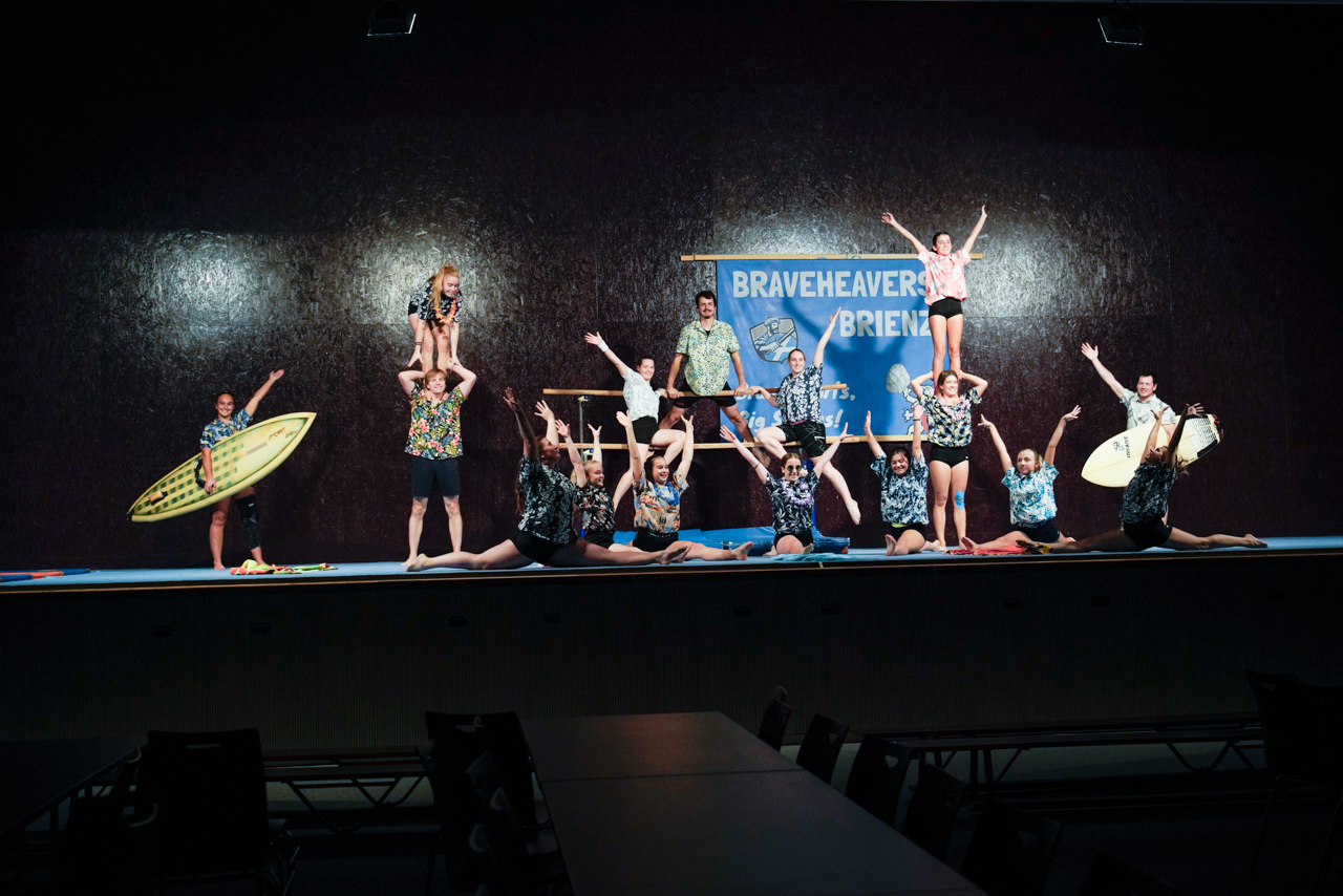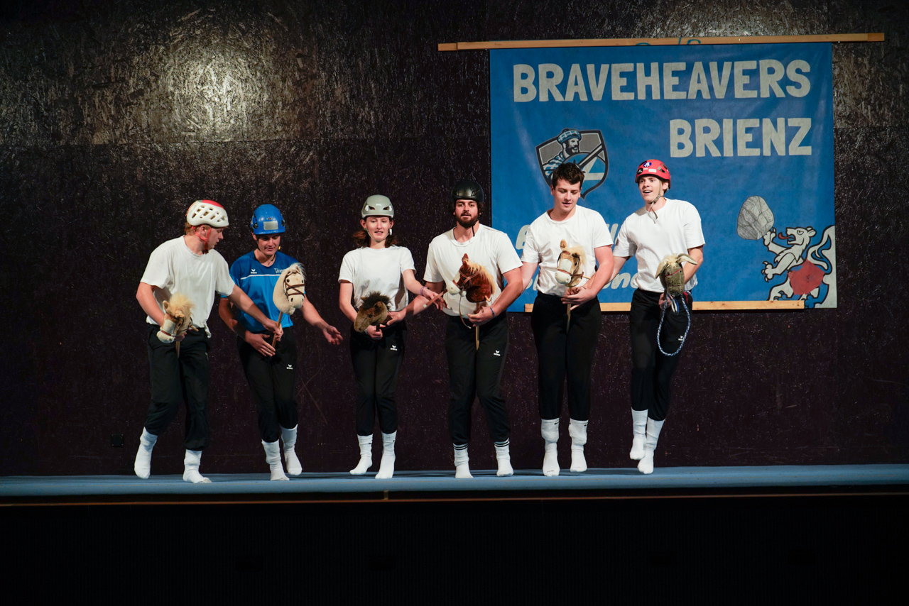 Mit viel Charme und Humor zeigten unsere Jugend- und Aktivriegen, was sie stattdessen tun könnten. Gemäss Programm hätten wir genauso gut fischen gehen, gamen, Hobbyhorsing ausprobieren oder uns im Synchronschwimmen versuchen können. Das MUKI wagte sich mutig an die Feuerwehr, während das Ki-Dance zierlich ins Ballett wechselte. Unsere Steinheber versuchten sich an den Highland Games – allerdings mit sehr mässigem Talent. Und so zeigte sich schnell: All die anderen Freizeitbeschäftigungen machen längst nicht so viel Spass wie unser gewohntes Vereinsleben. Am Ende waren wir uns einig – der Turnverein ist und bleibt der beste Ort für uns.